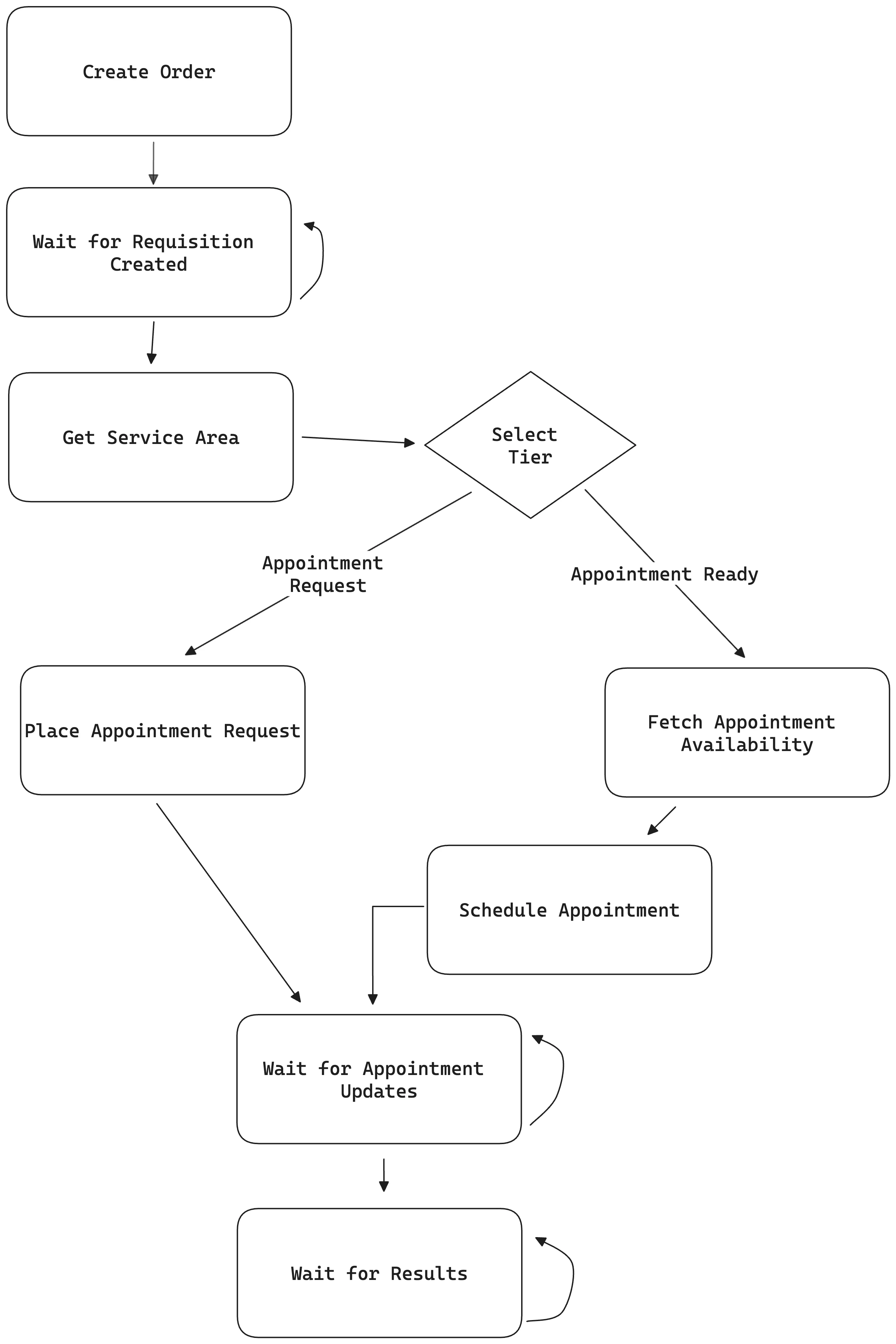 - Appointment Request: An appointment is requested through the Junction system using the patient’s address. A phlebotomist will eventually assign themselves to the appointment and define the appointment’s date time with the patient.