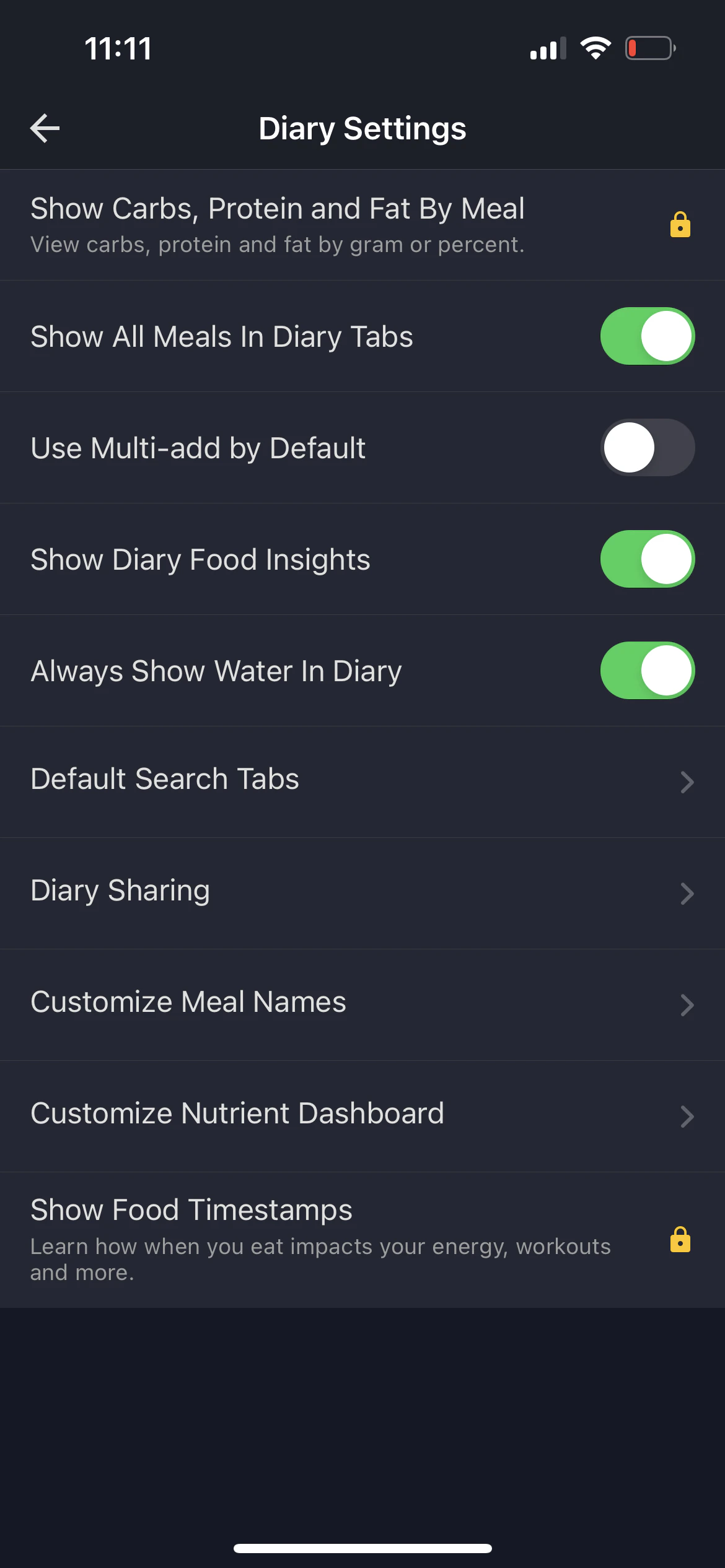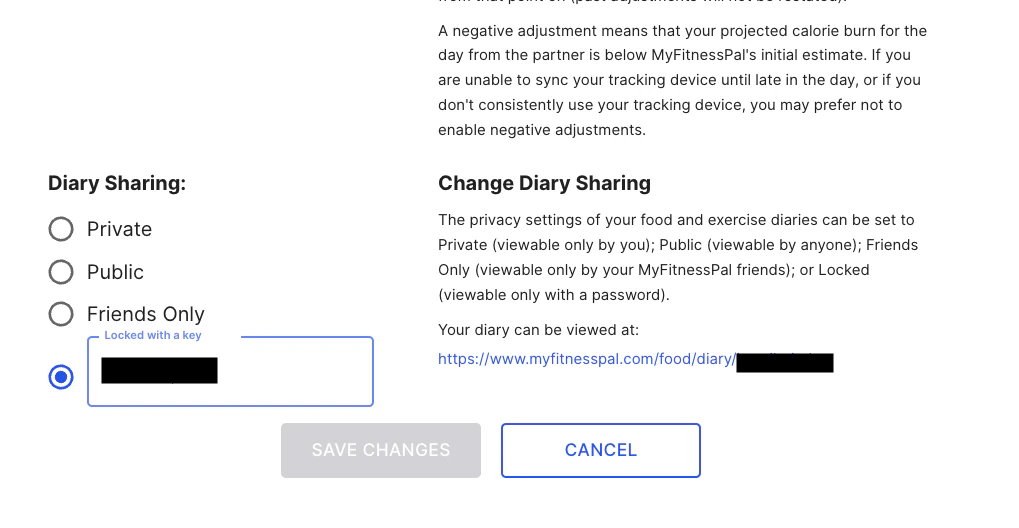 You can share your MyFitnessPal diary with Junction by locking your diary with a key.- Go to your diary settings and click locked with key.